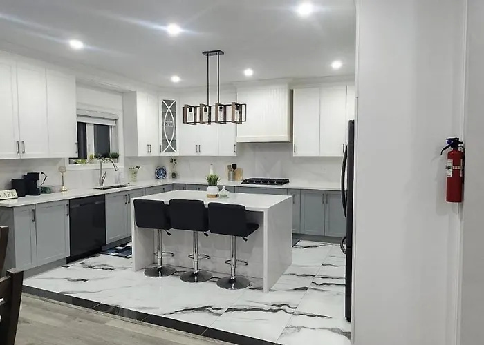 Le Stade Lambton se trouve à 4 km de cette villa de 4 chambres, et le Stade George Bell est dans une zone de 7 km. Vous pourrez également visiter l'Aéroport international Pearson Toronto, qui est à 15 minutes en voiture. Luxury Home - 5 Min From Airport, 15 To Downtown est située à seulement 550 mètres de l'arrêt de bus Martin Grove Road et à moins de 17 km de la gare Union de Toronto.